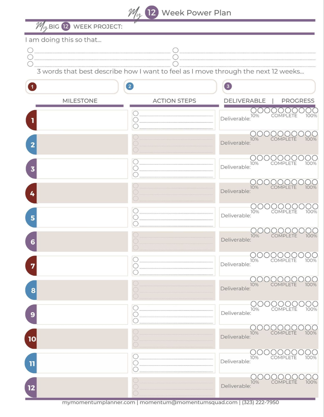 How to Use Your Undated Momentum 12-Week Planner
